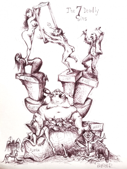 It seems almost unholy, or at least not wholly appropriate, to name the Sloth after one of The Seven Deadly Sins. Though long thought to be champion sleepers (up to eighteen hours a day) a recent study led by Dr. Neil Rattenborg reveals that these slow moving critters manage a mere ten, not that much more than a human. And this on a diet of leaves so poor in nutrition that they are forced to conduct their waking activities at an exceedingly slow pace. "Lazy", indeed! They are just coping with their environment. Perhaps the true sloths are the folks who live on a diet of chips and suds when much healthier alternatives are readily available, but that might be taking us into Gluttony territory.